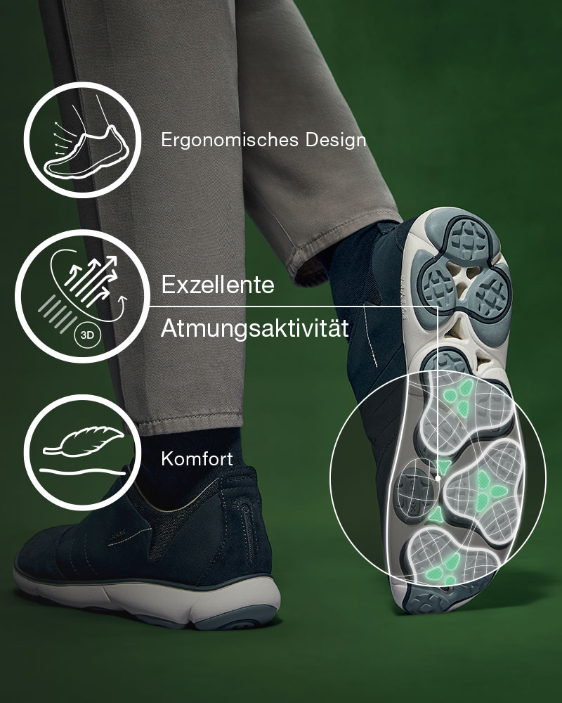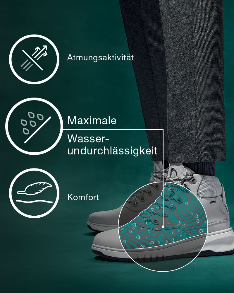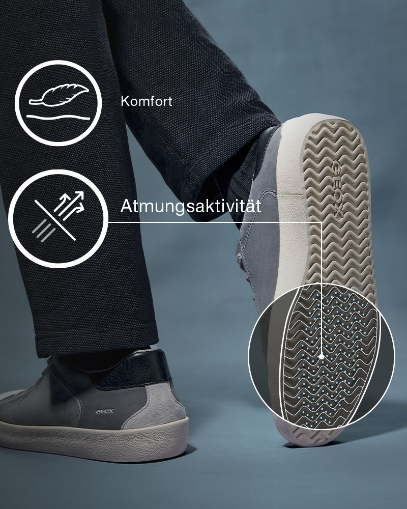 Einatmen, ausatmen, durchstarten. Vom kleinsten Schritt bis zum wichtigsten: Geox bietet Ihnen in jedem Moment ein Gefühl des Wohlbefindens. Bewegen Sie sich mit der natürlichen Energie, die Ihnen nur die Schuhe und Kleider von Geox bieten können – dank der speziellen atmungsaktiven Technologie.