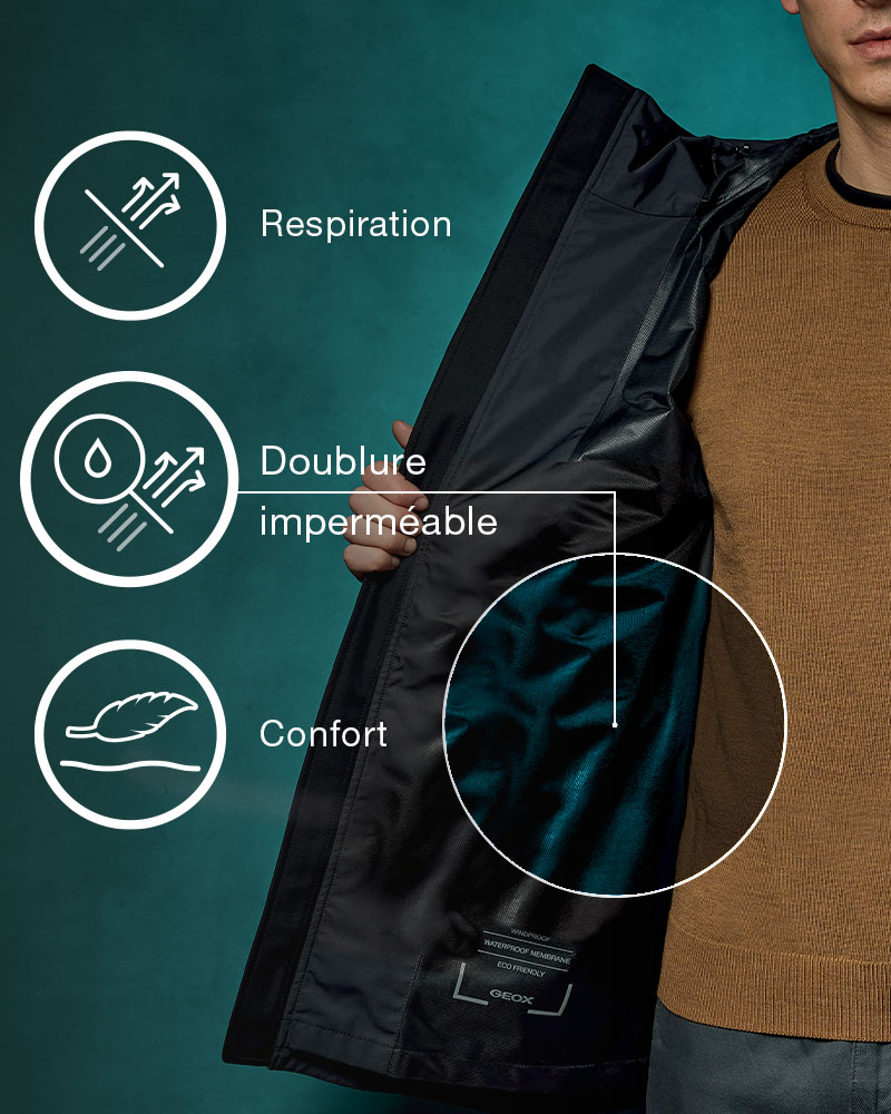 Des tissus spéciaux imperméables et coupe-vent, pour des manteaux qui garantissent d’excellentes performances d’imperméabilité et une respiration efficace, même quand il pleut des cordes.